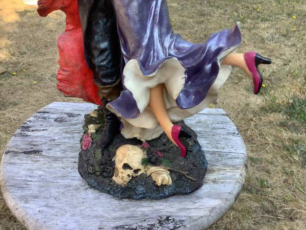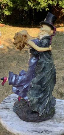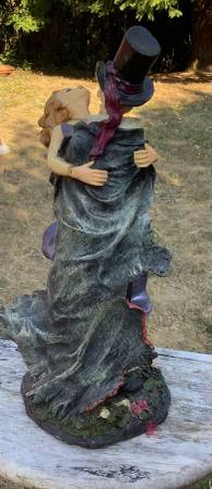 Symbolizes the theme of “Love Never Dies” and “Eternal Love” Resin material, heavy. 13 1/2” in height. One flaw on hand shown in the last photo.