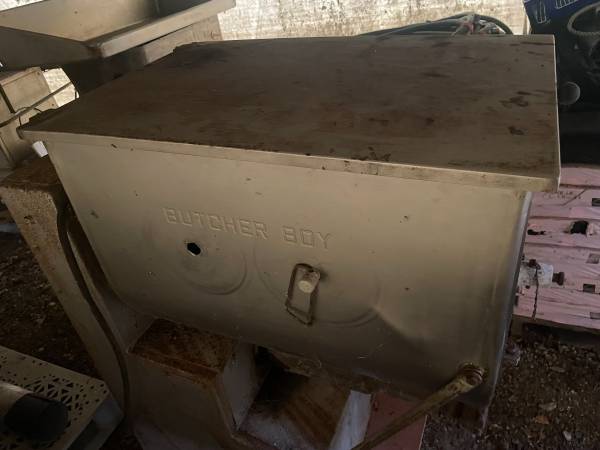 Large meat grinder with stainless tub. Used at Erdman's meat packing company. Model 1052F. 10Hp 220v 3 phase Been sitting needs work