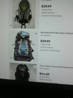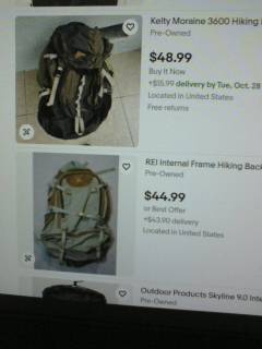 Very nice excellent condition. For those into camping hiking in the Northwest. All those zipper work properly even has 2 aluminum bar inside the main compartment for support. There also is the adjustable belt strap at the bottom and Harness shoulder straps adjustable as well. Many pocket 2 off the size one in the middle and one on the top. Plus plenty of Nylon tie off for outside objects. Miller brand welcome to compare prices on some these Interior Backpack