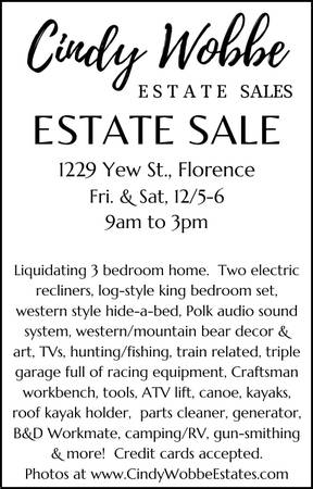 This sale is conducted by Cindy Wobbe Estate Sales. A full photo album plus video tour can be found cindywobbeestates.com