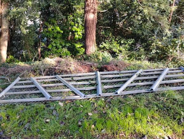 I have 2 gates, one is in good condition and has a wheel , the other one the frame is sturdy it needs some repair to the cyclone metal netting. Both are 5x10 feet.Asking 125 for both