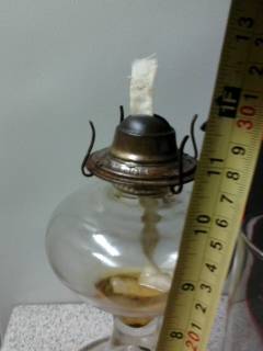 They are really hard these day to fine one like this except when you look online. Great to have around and it is vintage as well from a long time family member. Pure clear glass oil lamp. Not crack or damage. It is 6 inches at the base round cone style and 20 in the height with that top. hopefully someone could use it. It has been clean some.