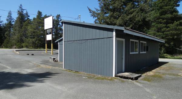 Recently updated 896SF store/office with three rooms, two entrances, electricity and wall heater and ample paved parking space all around the building. Has a tall and very visible 2 section billboard sign with an electric neon "Open" sign.