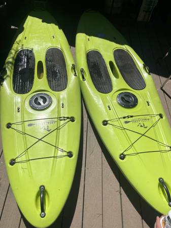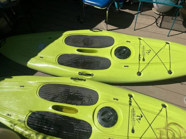Two Great Lakes brand stand-up paddle boards for sale, with two paddles. These are each about 9.5 feet long, with watertight storage compartments and bungee to lash gear down. One of them fell and both side handles are broken but the front and rear handles are intact, the other is in good condition. Please call rather than text!