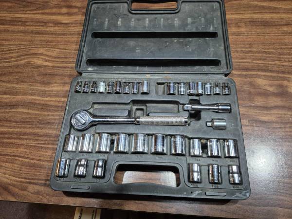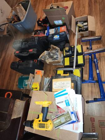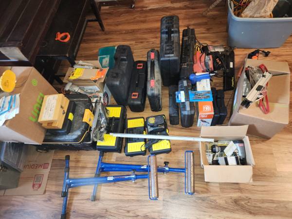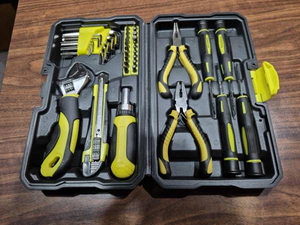 Wrenches, pliers, screwdrivers, socket sets, voltage tester, stud finder,